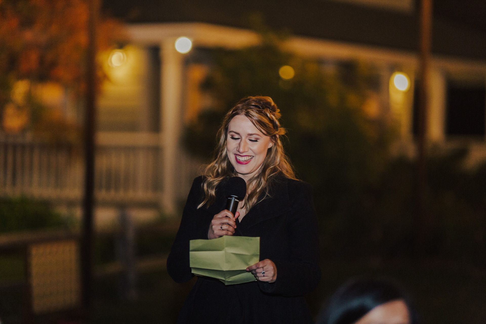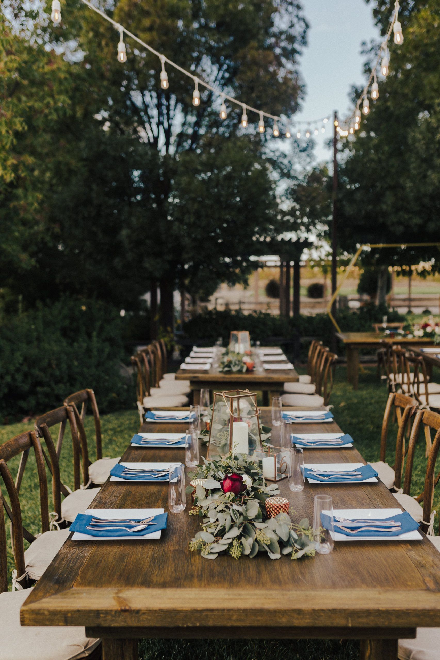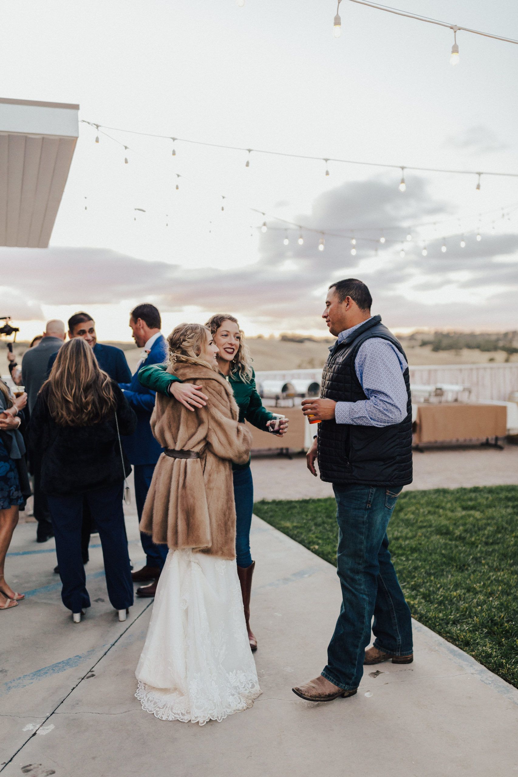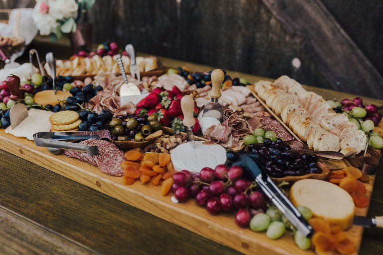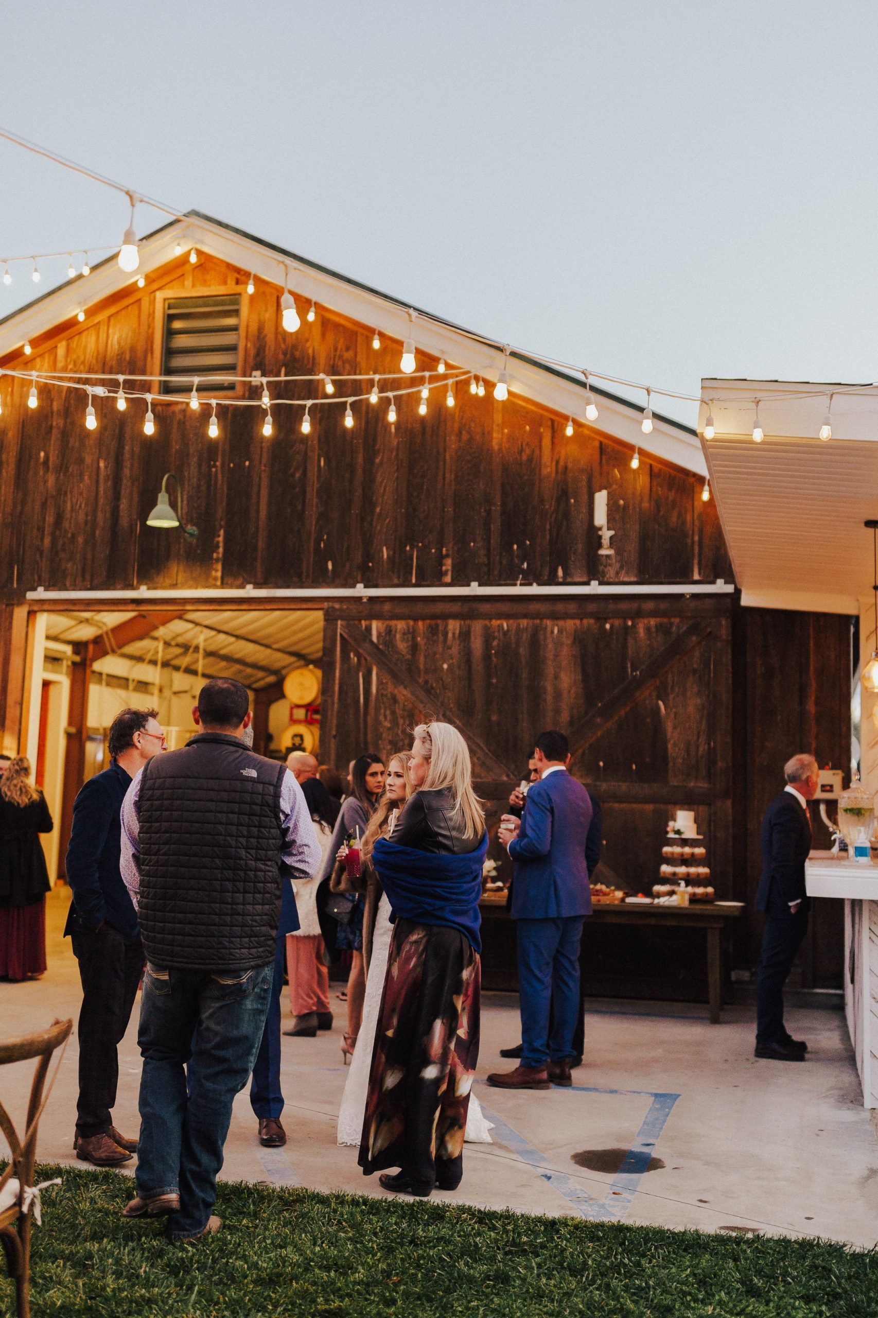 The reception took place under the bistro lights and featured another hexagon arch at the sweetheart table. Cocktail hour included his & her signature cocktails and a beautiful charcuterie board. Dinner was a buffet style taco bar by An Affair 2 Remember and dessert included cupcakes and a cutting cake by Linn’s Fruit Bin .