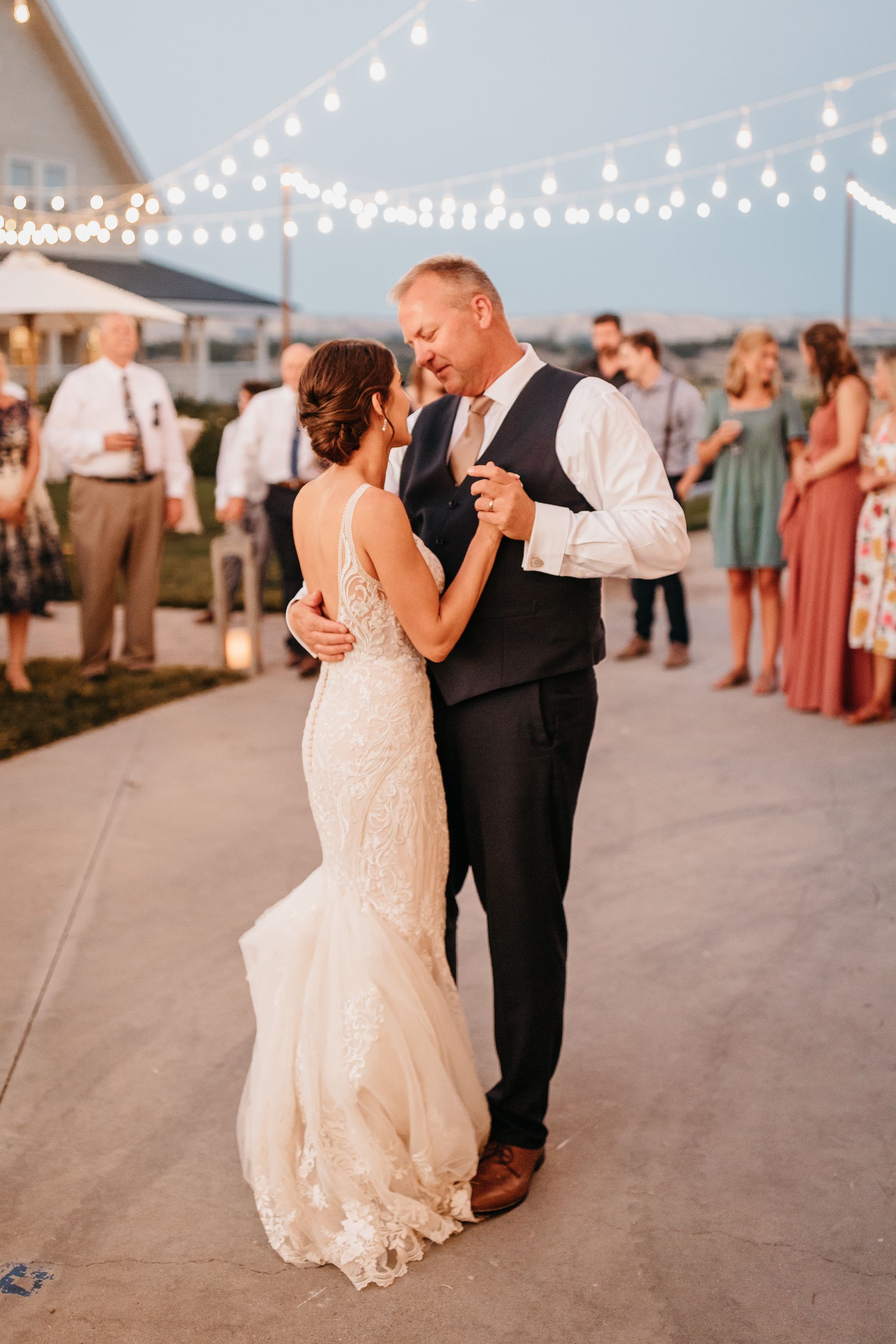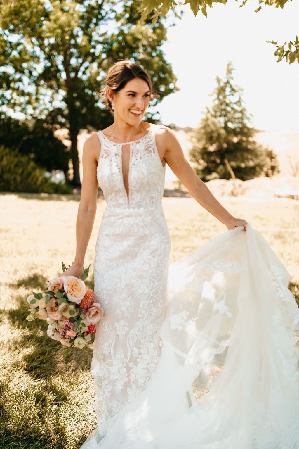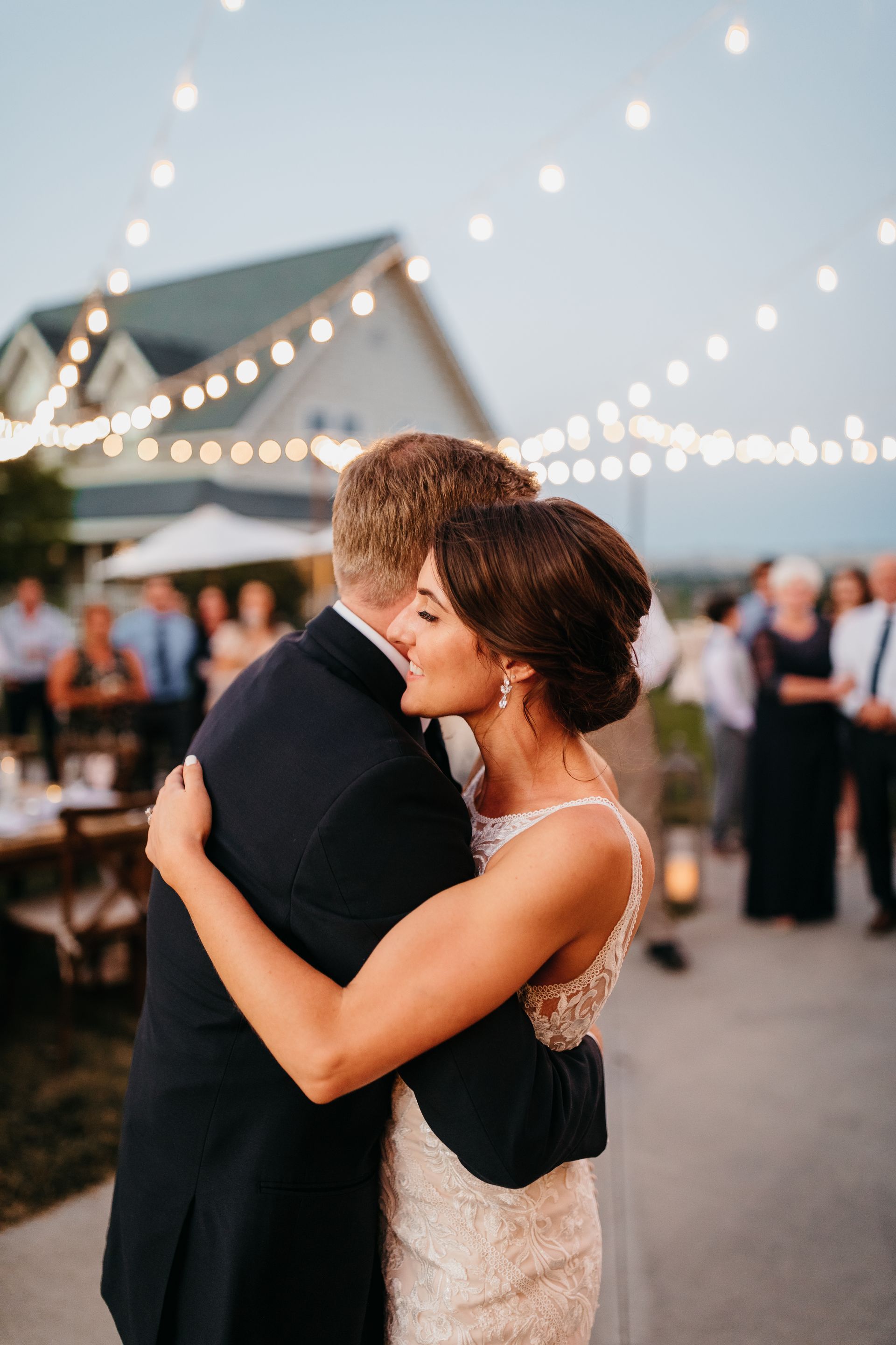 Camille was captivating in her lace gown and elegant updo.