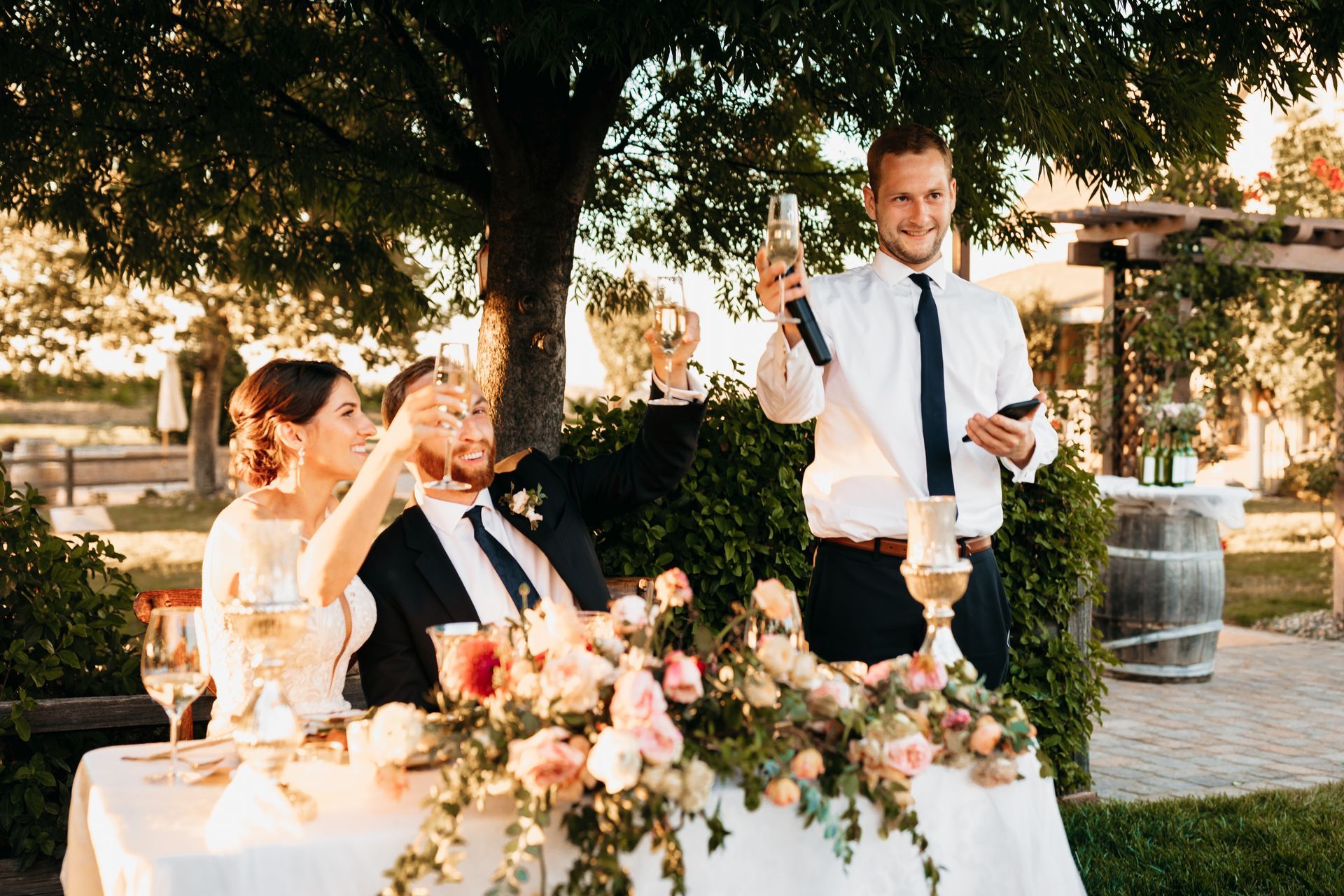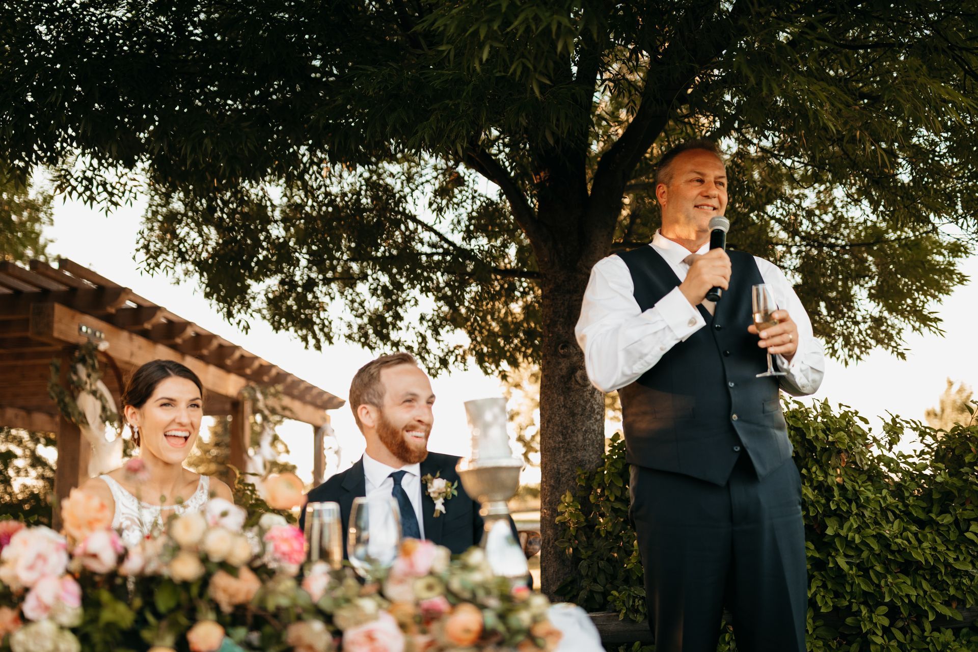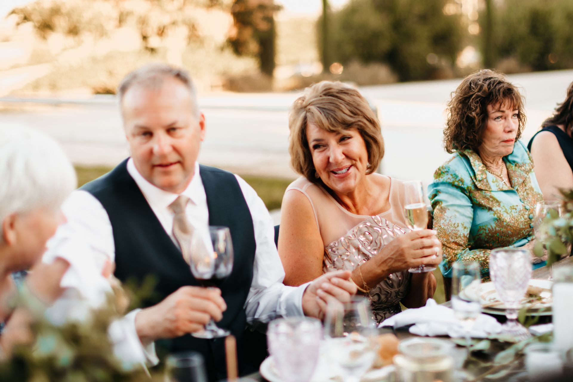 After the ceremony, everyone moved up to the reception area for dinner, drinks, speeches. Trumpet Vine Catering provided the delicious seasonally inspired dinner.