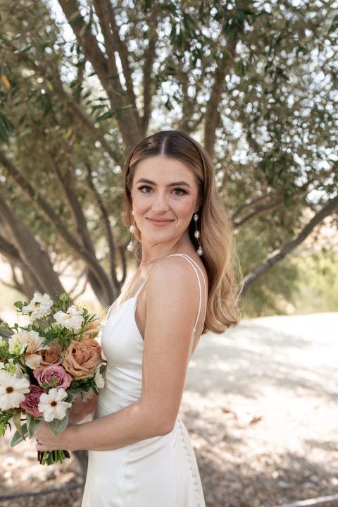 Megan looked stunning in her dress. The dress was understated, classic, and luxurious. Paired with pearl drop earrings and a celestial veil, she looked captivating. Tigerlily Salon did hair and makeup for the event. They went with an understated glam look that allowed Megan’s natural beauty to shine.