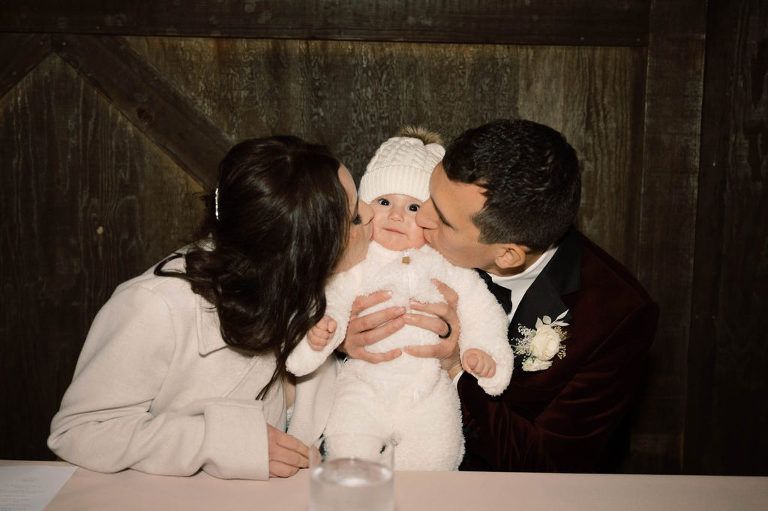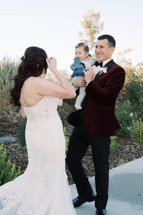 Alyssa and Patrick had a touching first look before the ceremony. They were joined by their daughter.