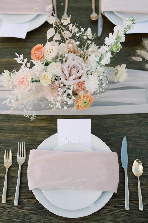 The florals designed by Mauna Florist were soft in hue, and beautifully textured. They were light, airy, and delicate, all while being grounded with the neutral tones. Pops of color made them fun and perfect for this November wedding.