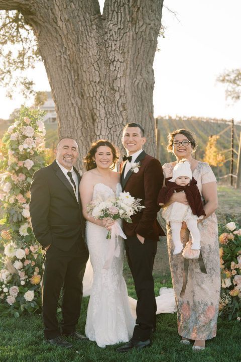 The ceremony took place under the majestic oak tree. As that golden hour hits, it takes on a glow that embodies the essence of wine country on the central coast. It is one of the many reasons why we fell in love with the property.